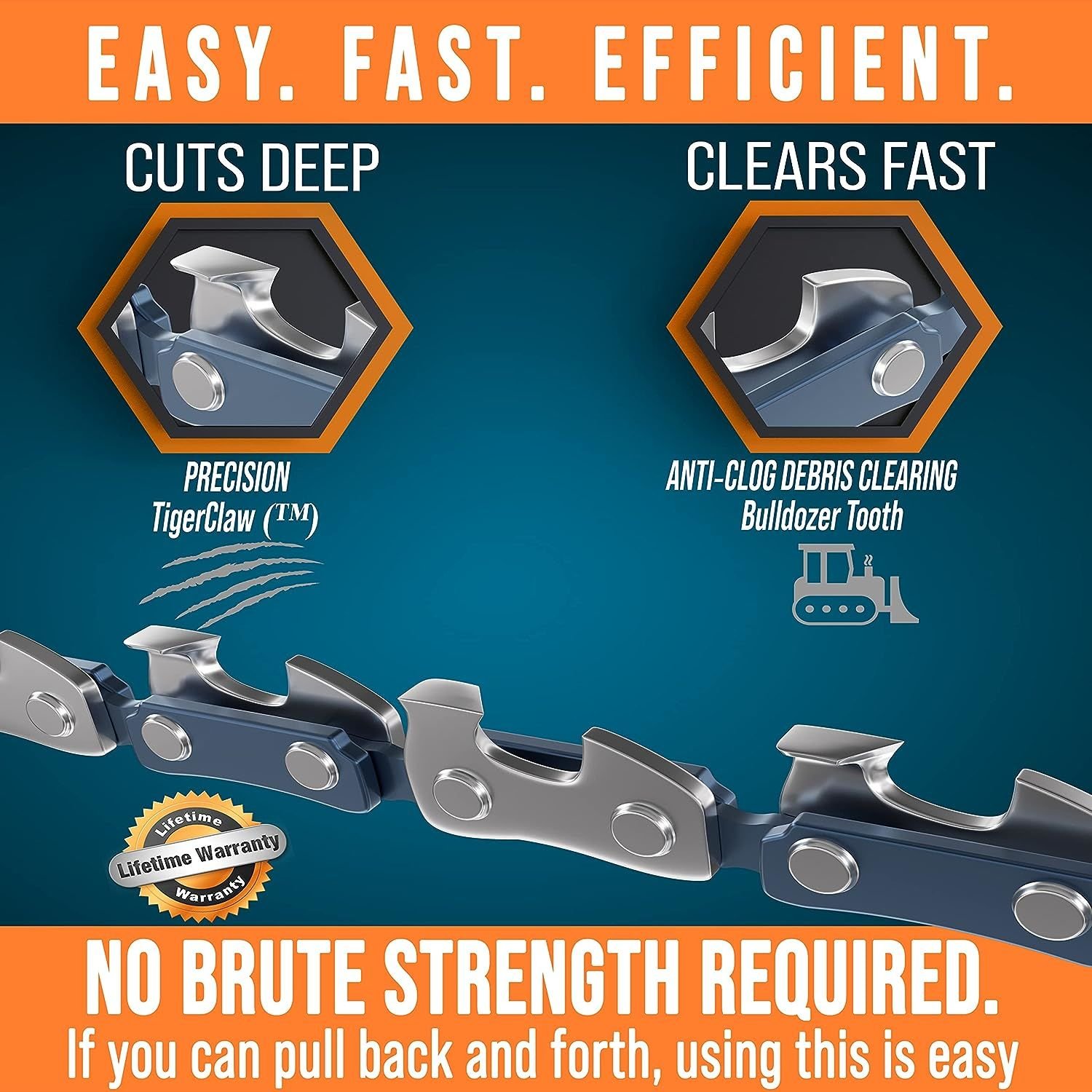 5. Fast Cutting:The hand saw chain has a sharp and efficient cutting edge that can remain sharp for long periods, making it ideal for chopping wood in survival situations and outdoor adventures.