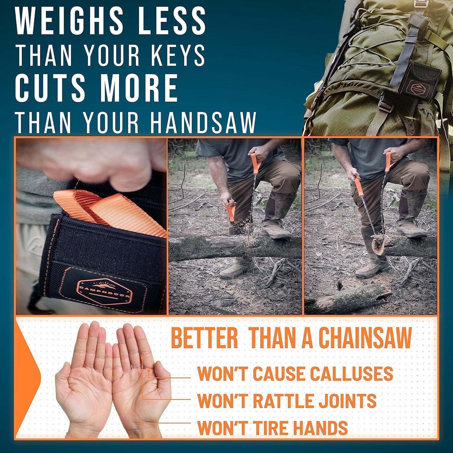 3. Access Hard-to-reach Areas:The hand rope chain saw, is designed to reach areas that cannot be reached by ordinary chain saws, making it ideal for cutting in confined spaces or when precision is required. Ideal for outdoor use by campers, backpackers, fishermen, hikers, and others.