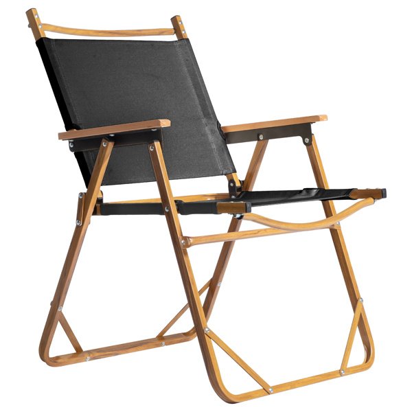 Home > 54.5*58*73.5cm Large Aluminum Frame 600D Khaki Oxford Fabric Loading 100kg Imitation Wood Grain Spray Paint Camping Chair Black
