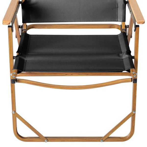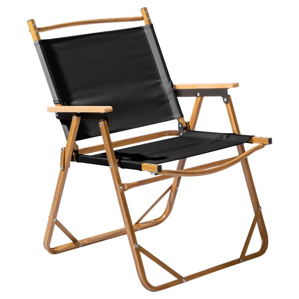 54.5*58*73.5cm Large Aluminum Frame 600D Khaki Oxford Fabric Loading 100kg Imitation Wood Grain Spray Paint Camping Chair Black