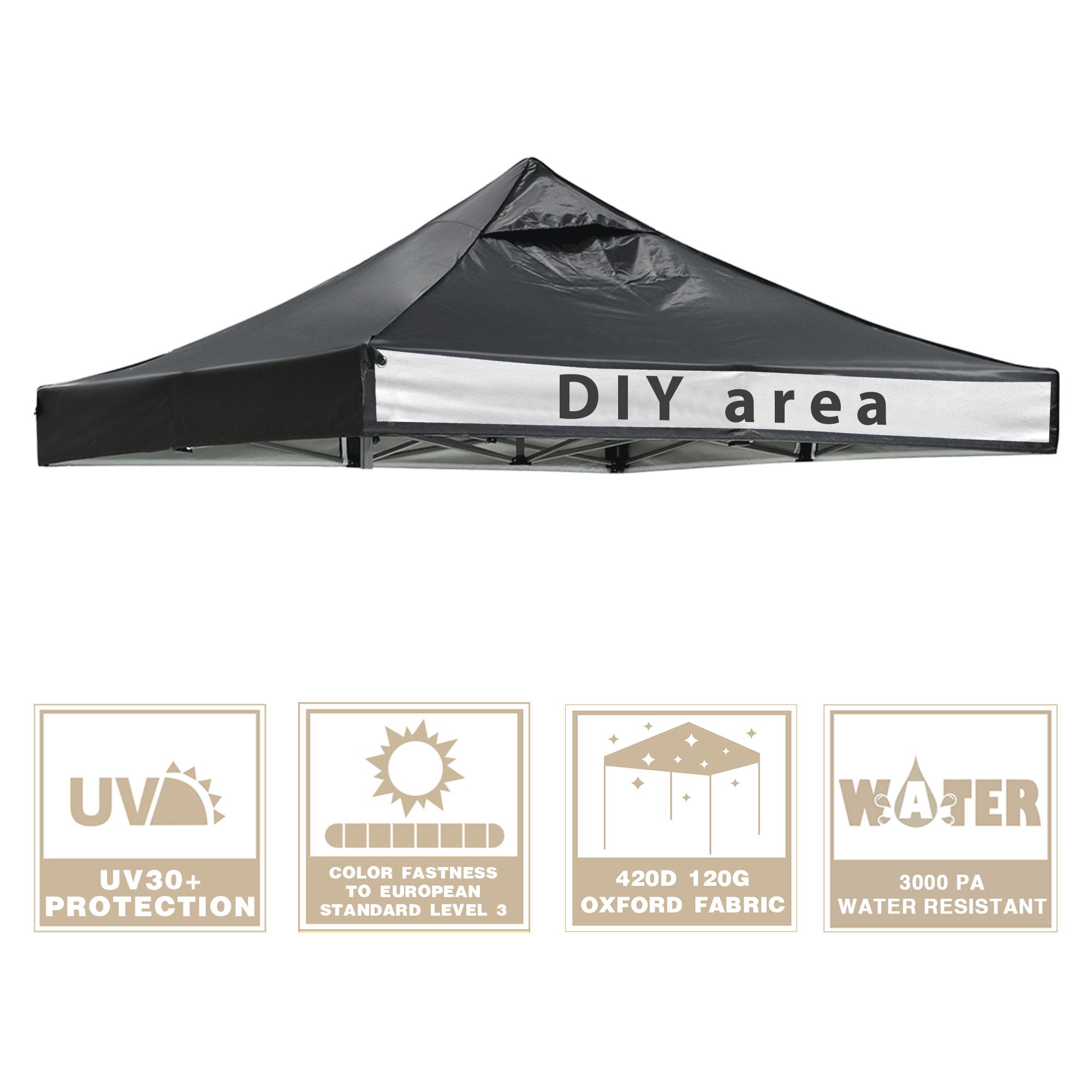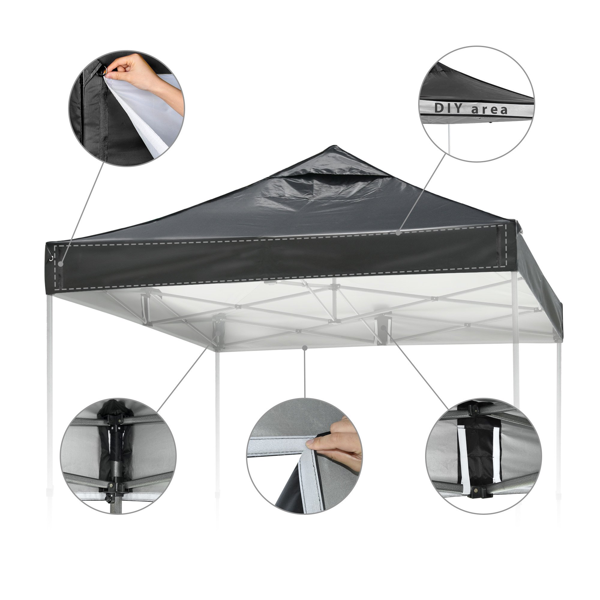 - Easy Installation with Logo Area - Tool-free Installation with self-adhesive straps; easy fixing the top to the frame; Loop fasteners on the valance for freely attaching your logo and banner;