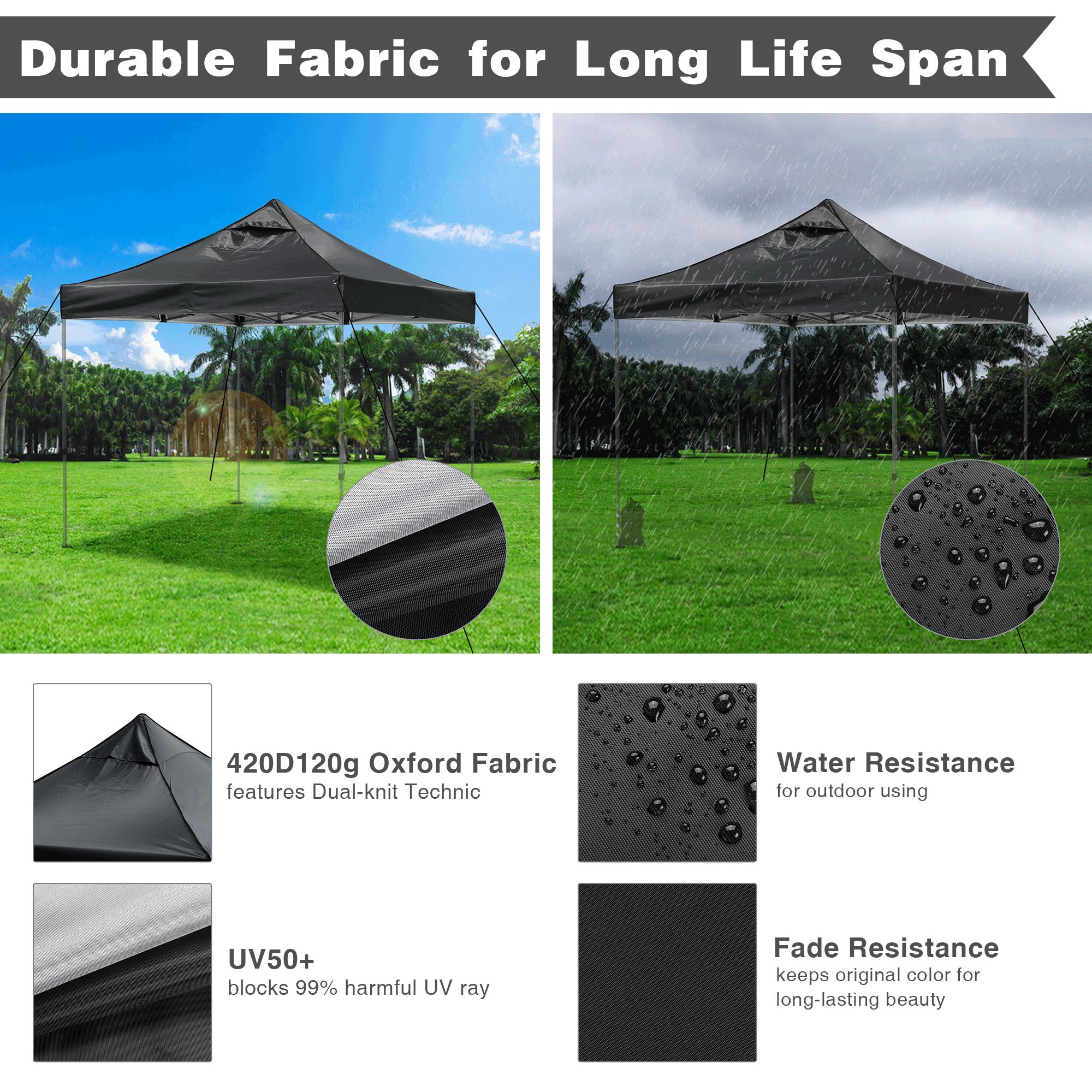- Durable Material & Stable Construction - 420D 120g Oxford fabric with dual-knitting; compared to traditional knitting; features better wear resistance for long life span; Water-resistance for drizzling days; D-rings on corner for easily attaching ropes with stakes to enhance stability; Air vent design on the top for better ventilation; keeping steady even in windy days
