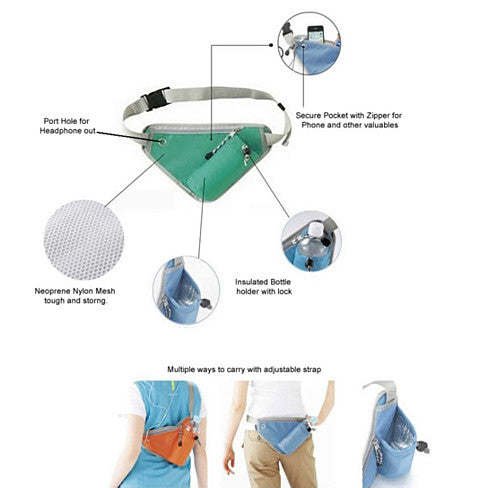 Details:Port holes for access to Smartphone with headphones.Insulated Pocket for water bottle or thermos bottle storage.Plenty of room to fit in your wallet and car keys.Light weight and easy to carry with adjustable shoulder strap.Made from Nylon and Neoprene materials.Hard Nylon zipper.Water and Dirt Resistant. Multiple Colors to choose from.