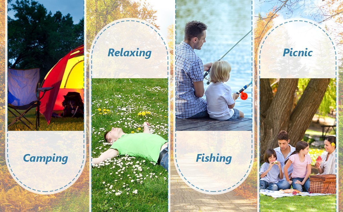 1.Foldable Design for Portability:Because of the quick pop-up design, this outdoor camping chair can be folded or unfolded in seconds for labor-saving. Coming with a durable carrying bag, it is convenient for transportation and storage.