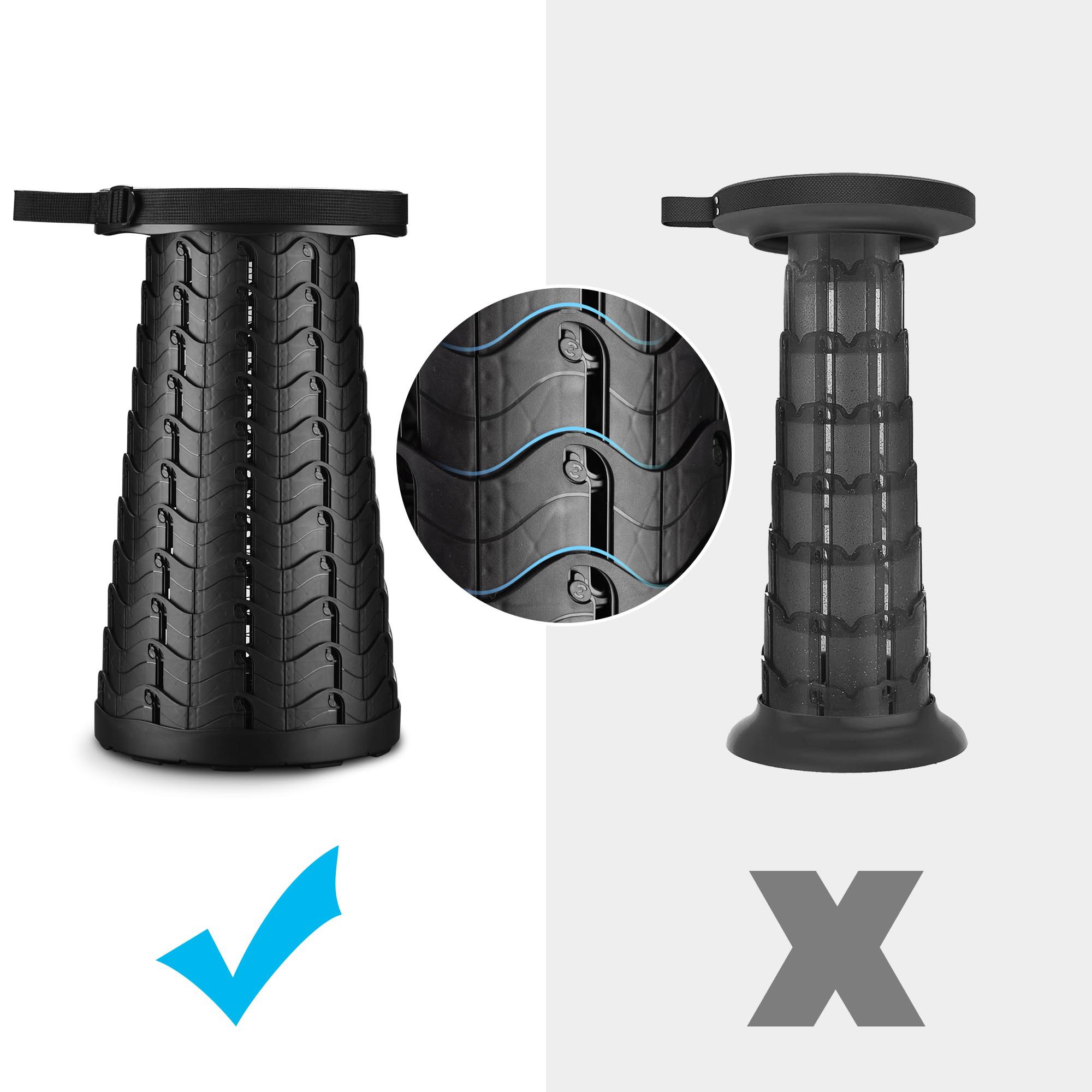 - Stable & Safe - Features a special fish scale frame with clasps for providing a tightened and stable structure; Equipped with non-slip stool feet on the bottom for increasing friction and stability, preventing slipping when using on different surfaces such as grassland, cement, wood and tile floor