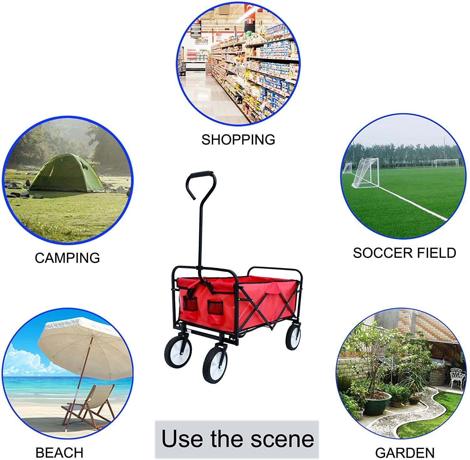 5.WIDE RANGE APPLICATIONS: Folding utility wagons are used in a wide range of applications, such as outdoor activities, beaches, gardens, parks, camping or shopping to make your life more convenient.
