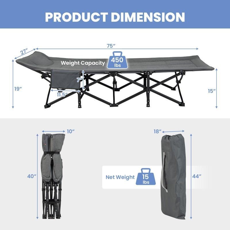 3.Camping cot requires no assembly and can be folded and unfolded in seconds.