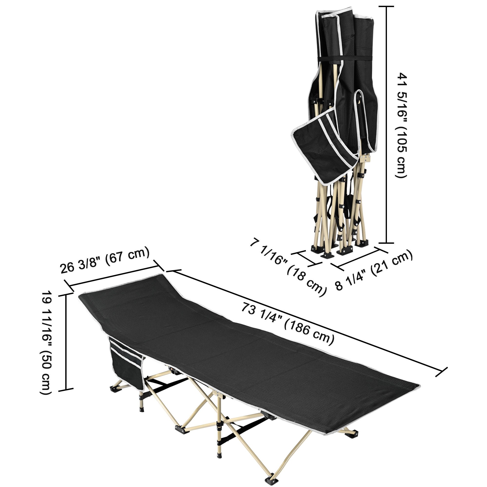 - Foldable & Portable - 73"x26"x20" Folding Camping Cot features a compact folding size of 8"x7"x41" and weighs only 13.5 Lbs for effortless storage and transportation with the carry bag included, ideal for storing in the car trunk or putting it on a motorcycle for travel, camping, picnic, fishing and other outdoor activities