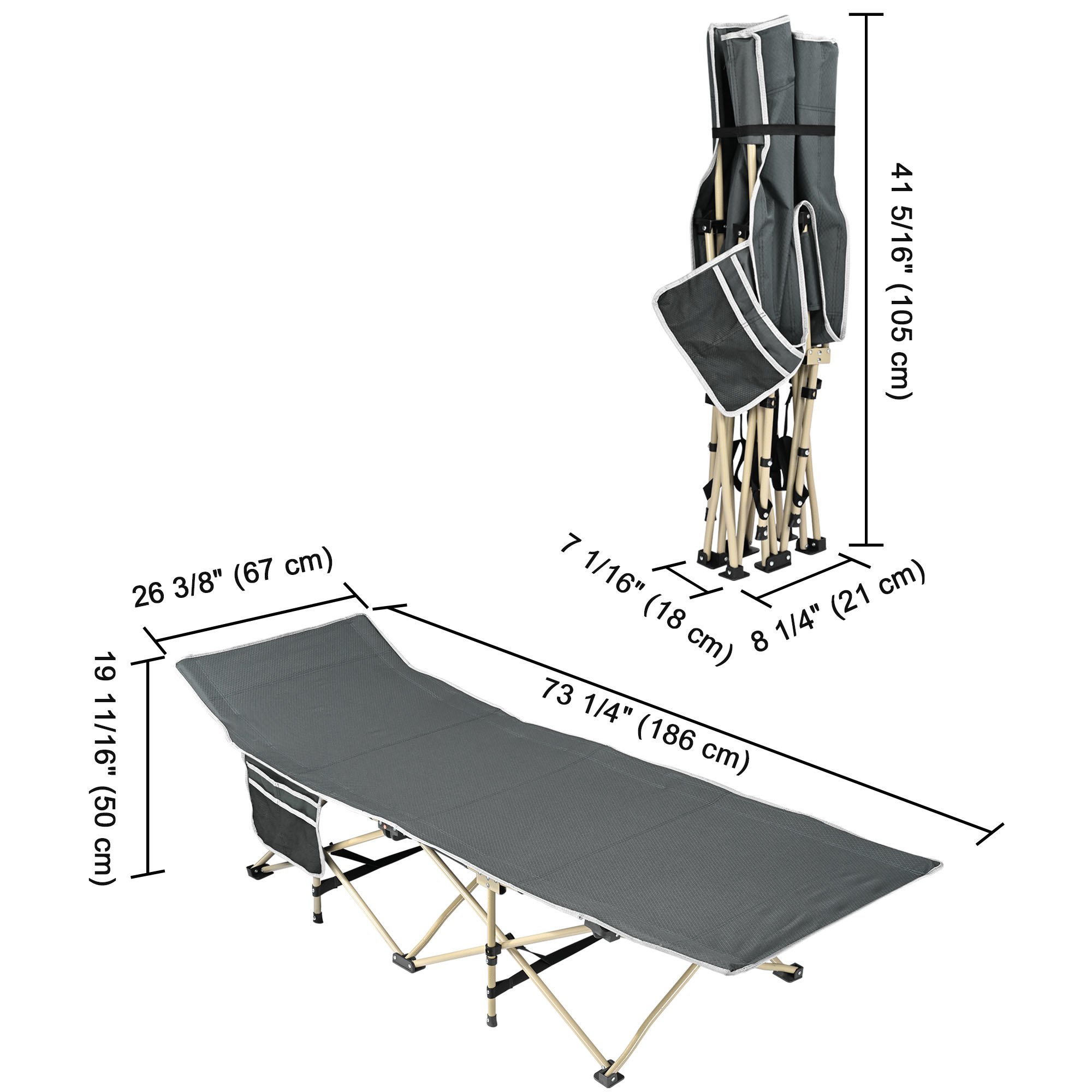 - Foldable & Portable - 73"x26"x20" Folding Camping Cot features a compact folding size of 8"x7"x41" and weighs only 13.5 Lbs for effortless storage and transportation with the carry bag included, idealfor storing in the car trunk or putting it on a motorcycle for travel, camping, picnic, fishing and other outdoor activities