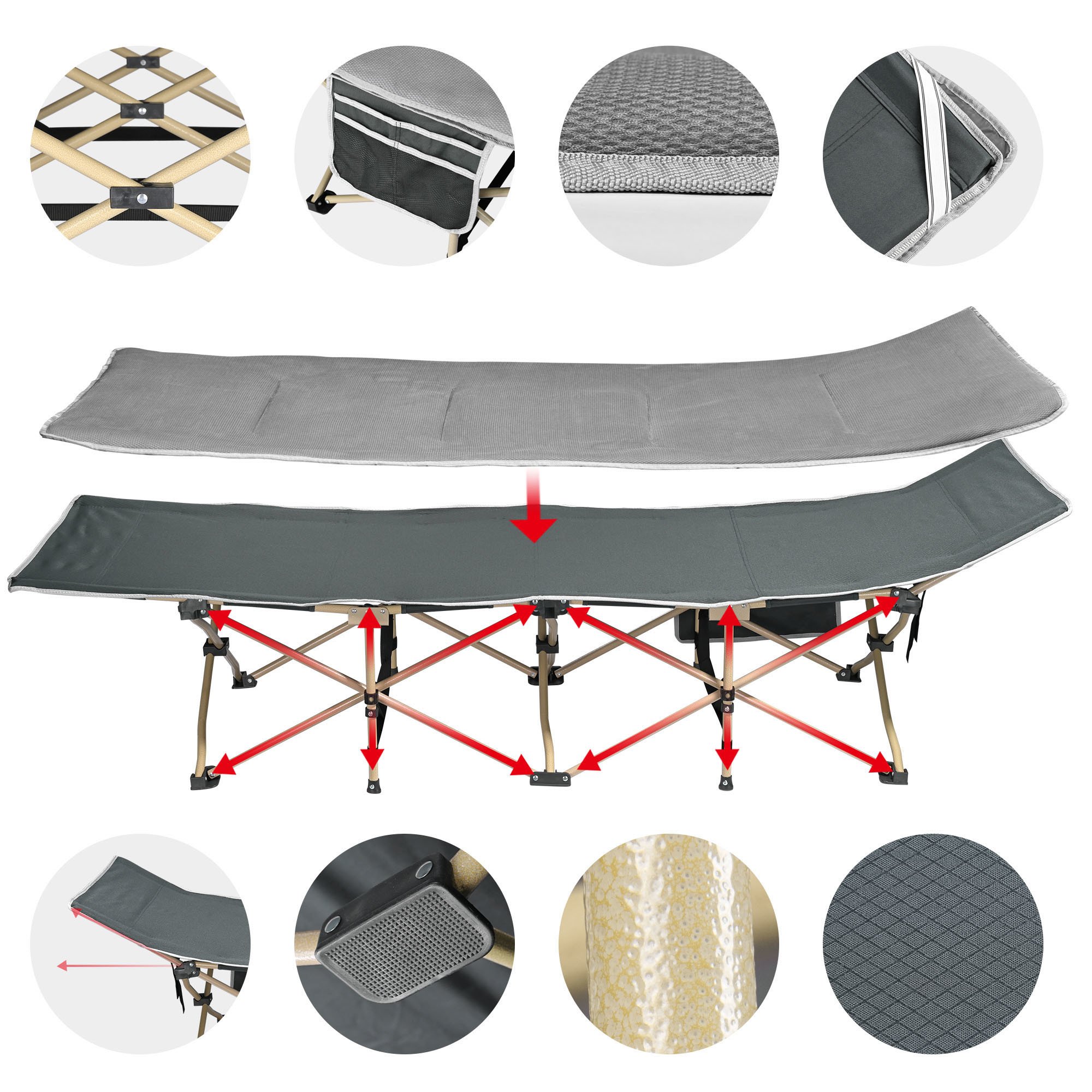 - Easy to Set up - No assembly required, simply unfold the cot in seconds to get a bed for resting, and fold it quickly after use for space-saving storage; Equipped with side pockets for holding your phone, tablet, magazine, flashlight and other essential belongings