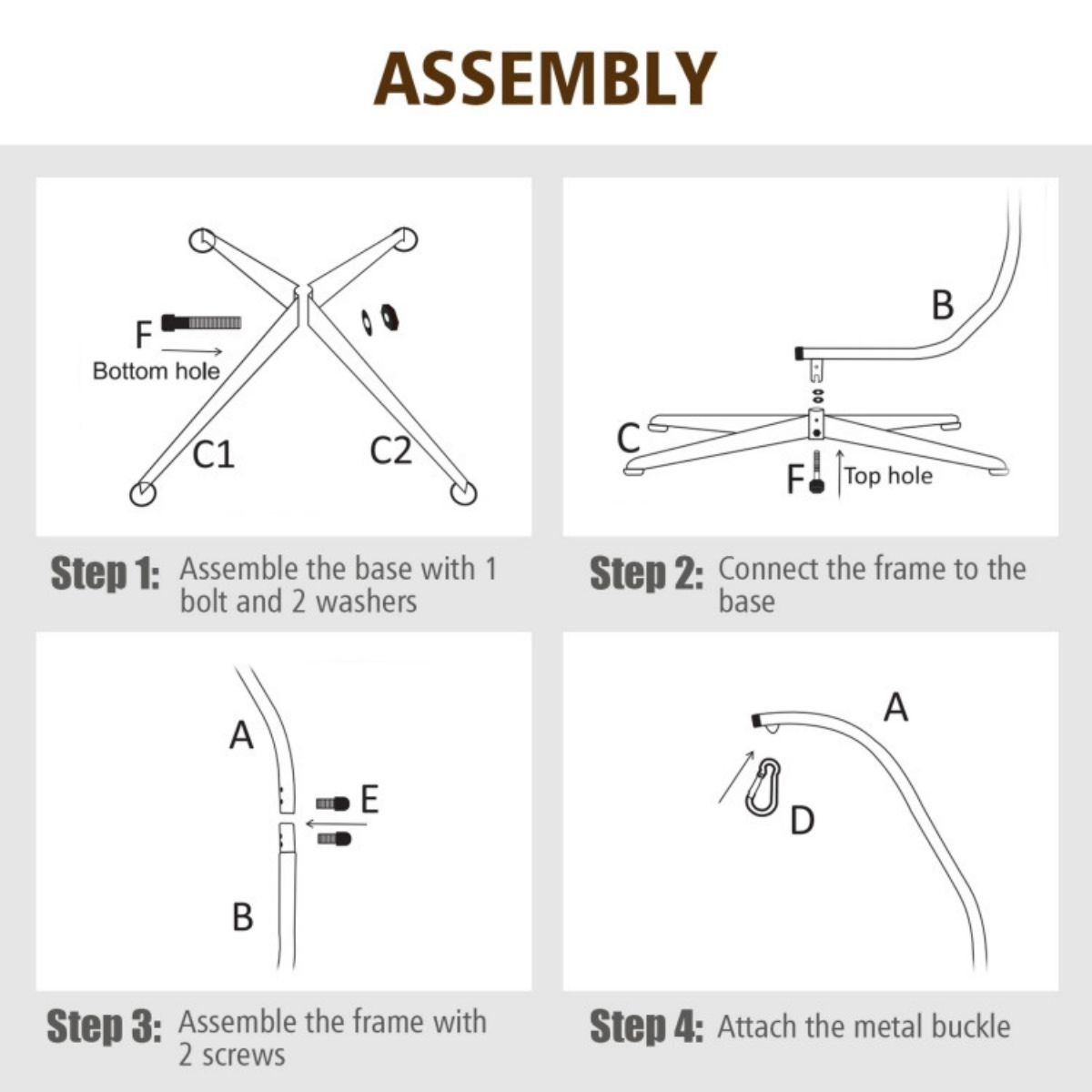 2.Durable Rust-resistant: The Hammock Chair Stands are constructed of powder-coated steel and a rust-resistant finish for durable hammock C-stands that withstand most weather conditions. Ideal for all indoor and outdoor surfaces.