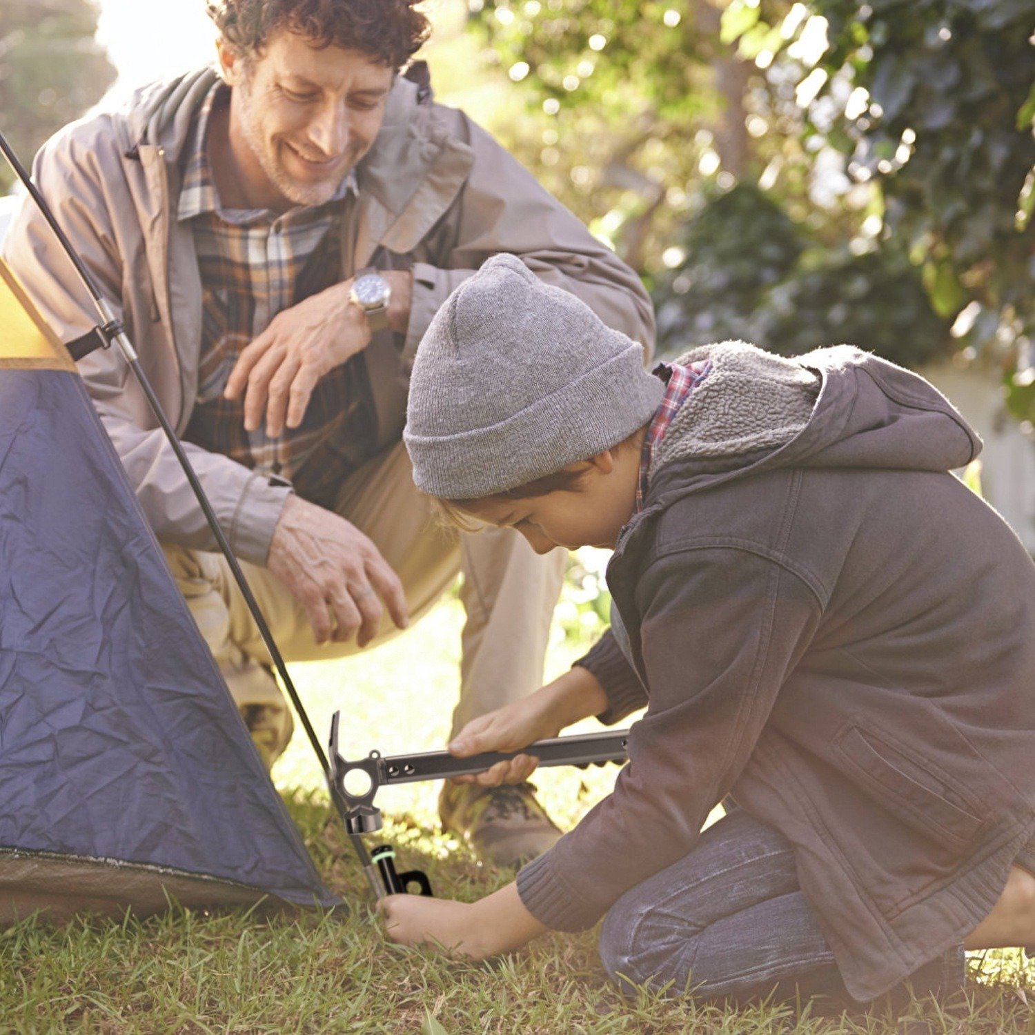*Multifunctional Camping Hammer*:Combined with concave design; bottle opener design and hammer on the head side; hook design on the tail side and safety lanyard in one piece; this multifunctional hammer is not only easy to hammer the camping stakes into tough ground or pull out from the ground; but also can open all kinds of beer bottle caps; hang for easy storage and more. Besides; advanced steel material ensures its durability and long lifespan. It's an indispensable tent tool!